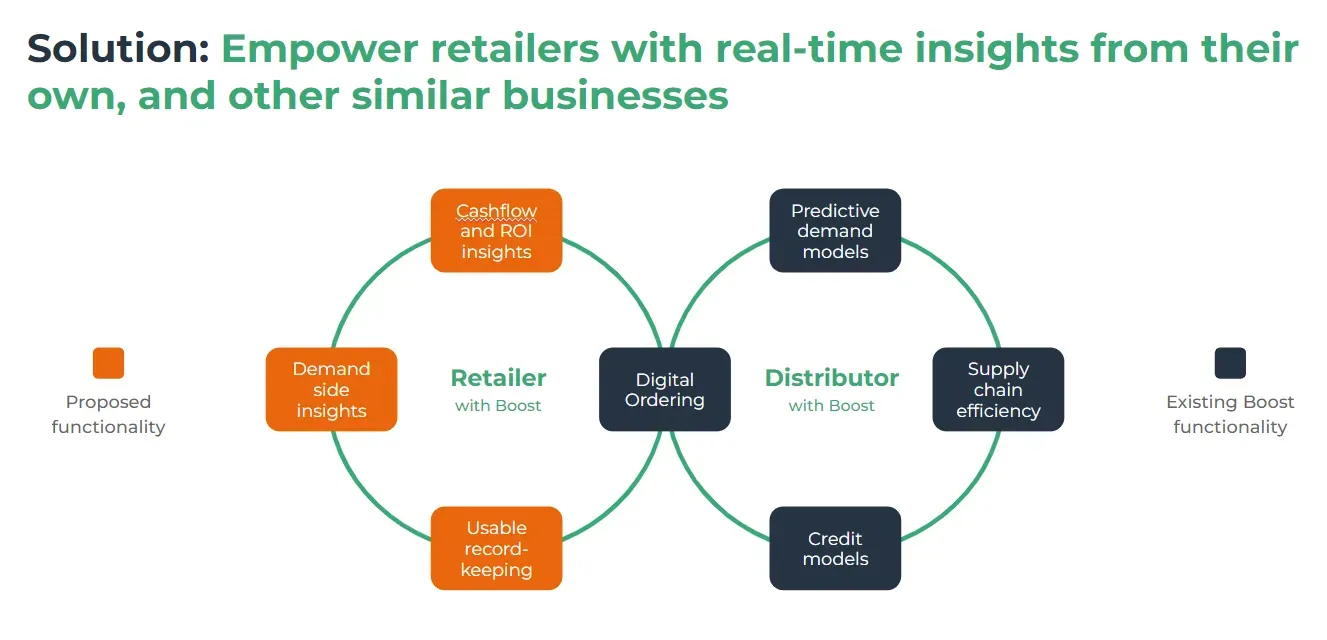 In addition, our work trialing embedded working capital solutions for retailers has taught us the benefit of working with local lenders in the markets we serve. In the near future, we hope to offer Boost distributor, wholesaler, and retailer users access to working capital through local banking partners who use the data from the Boost platform to make informed credit decisions.