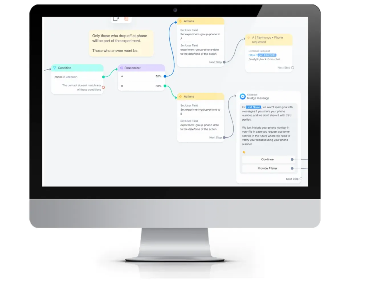 Conducting A/B testing is far easier on digital onboarding channels than in physical bank branches. You don’t have to train a bunch of customer-facing staff on a new process and ask them to monitor results, as well as monitoring a control group using an established process. You can run A/B tests in native apps, but it can be time consuming to deploy different versions, both in terms of developer time to code, and pushing out the new versions to users. Chat is a great way to run A/B tests, because chat is very low-barrier-to-entry (everybody’s already on chat, they don’t have to download a new app to talk with your chatbot). You can run a lot of chatters through your experiment quickly and thus innovate and iterate rapidly.