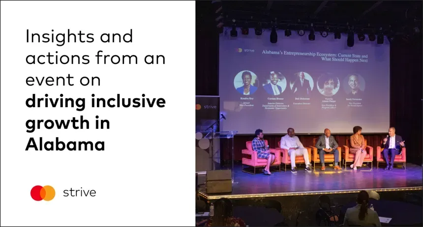 This quote from Bob Dickerson, Executive Director of the Birmingham Business Resource Center, reflected many of the themes explored at the sixth Mastercard Strive USA Summit, convened in Alabama. The event brought together leaders from government, philanthropy, the private sector, and other partners to spotlight success stories, share learnings, and identify new opportunities in the state’s small business ecosystem.